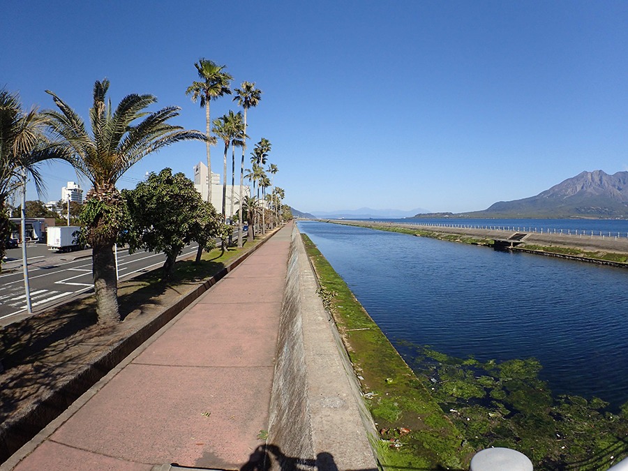 昭和47年(1972年)の埋め立て事業の際に作られた水路で、与次郎ヶ浜の外堤防と内堤防の間に設けられています。長さ1.6kmの穏やかな水路となっており、様々な生きものが生息しています。特に夏から秋に水面付近で見られるタコクラゲが人気です。遊歩道もあり、雄大な桜島を正面に眺めながらのんびり散歩などを楽しむことができます。