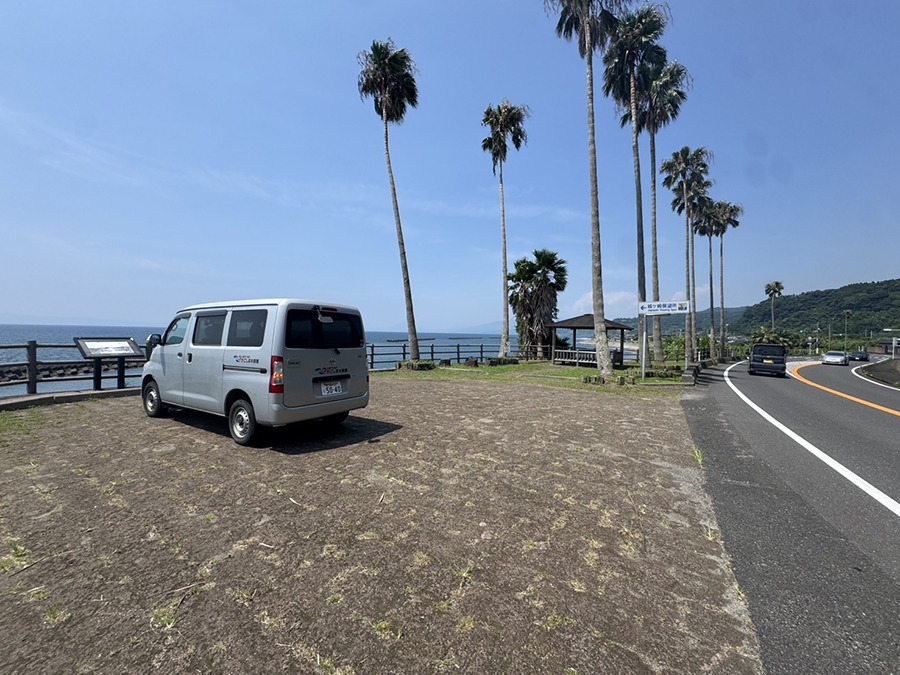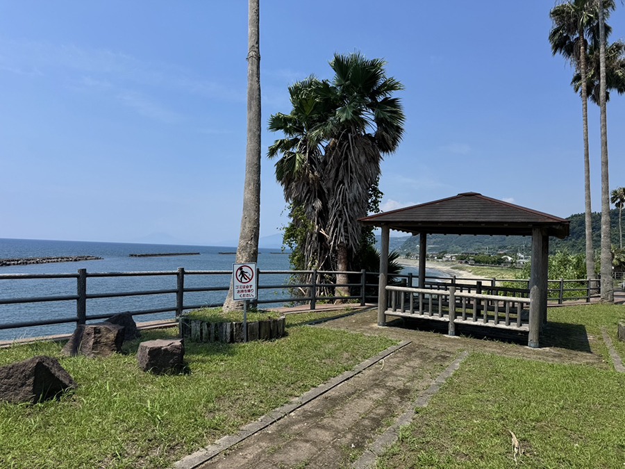 視界を遮るものがないため、非常に見晴らしの良い展望所です。錦江湾と開聞岳がきれいに見えます。夕日が沈むのを見るのもおすすめです。