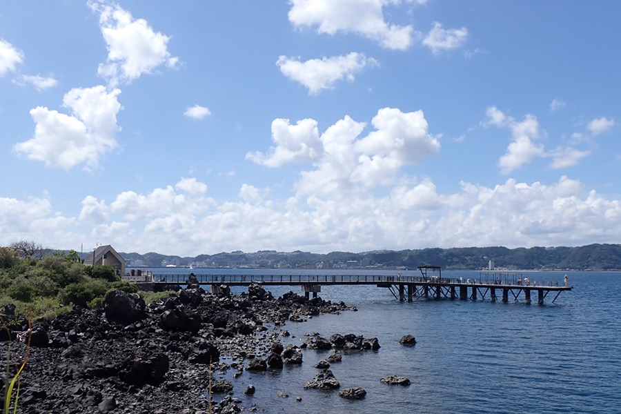 桜島港フェリーターミナルから徒歩圏内の「桜島海づり公園」。雄大な桜島をバックに気軽に釣りが楽しめます。水深は6m~9m、潮流は比較的速い釣り場です。季節によって様々な魚が釣れます。トイレは「桜島」溶岩なぎさ公園内にあります。