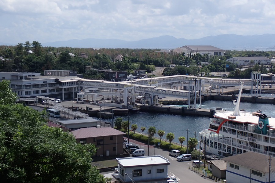桜島と薩摩半島を行き来する、年中無休カーフェリーの桜島側の乗り場です。鹿児島港までの乗船時間は約15分です。甲板に出ることもでき、錦江湾に生息するミナミハンドウイルカやハセイルカの群れに会えることも!