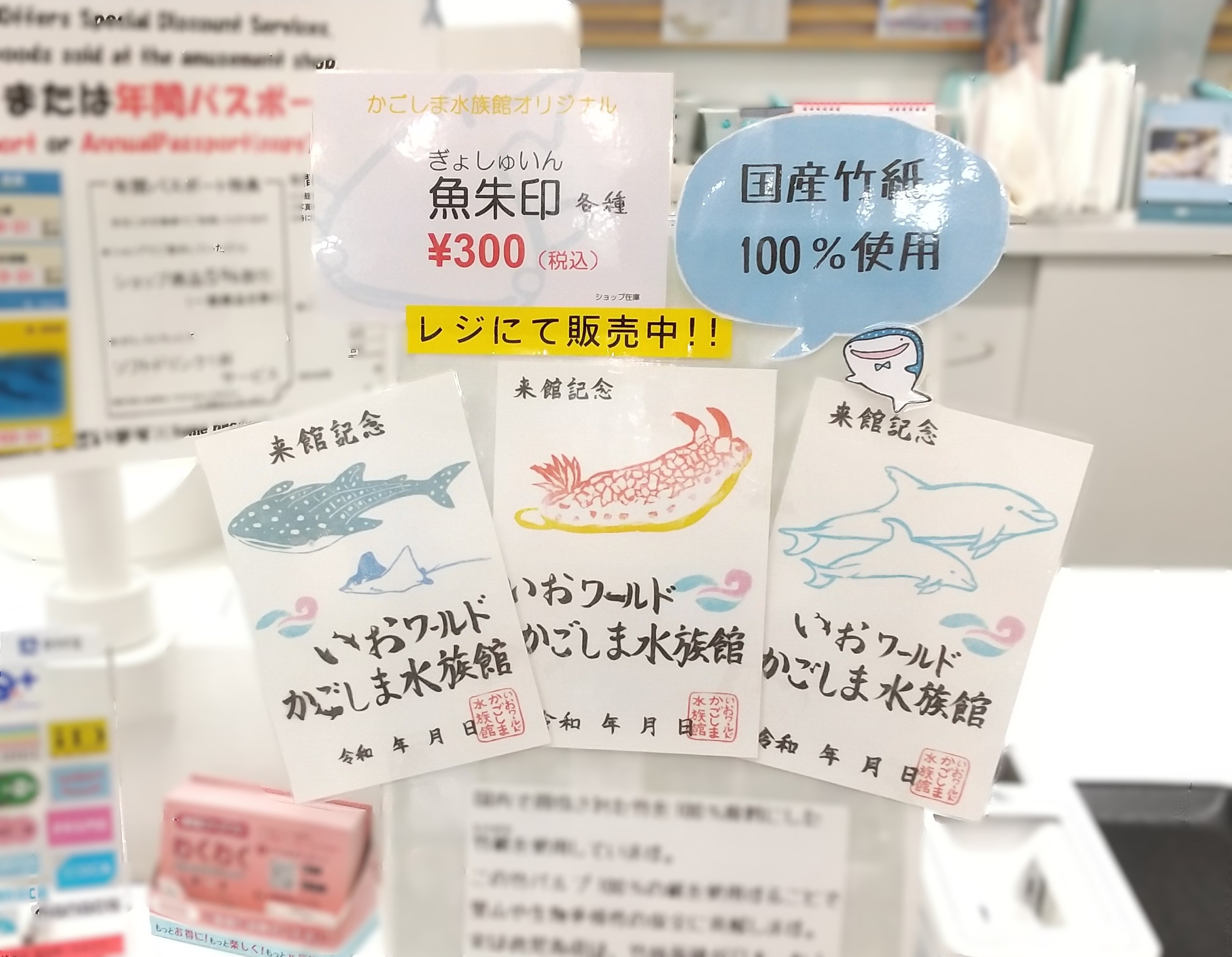 「魚朱印」とは神社やお寺でもらう「御朱印」を水族館風にアレンジしたもので、近年多くの水族館でそれぞれの館オリジナルの魚朱印が販売されています。