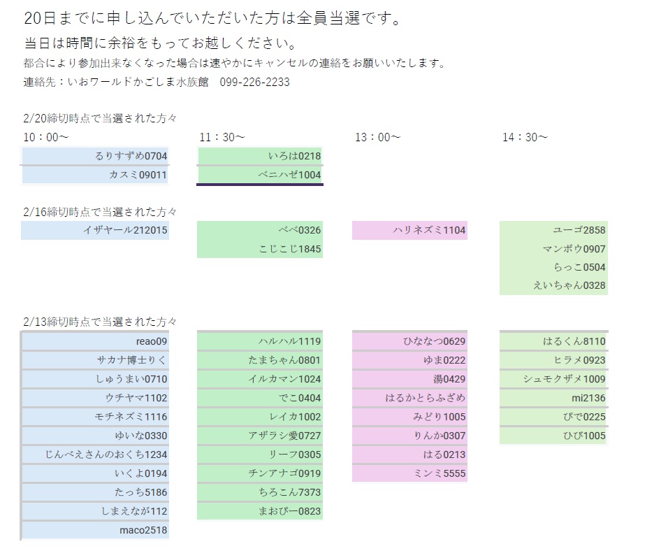 水の生きもののジェルキャンドルを作ろう!2/17,2/20締切分当選者のお知らせ