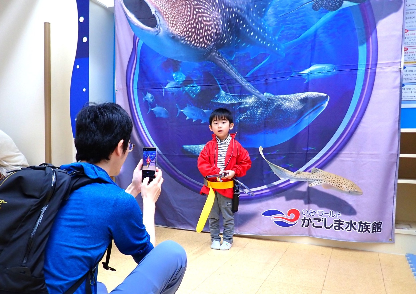 内 容:水族館スタッフの制服(赤いジャンバー、いるかの時間の衣装)を着て、 また潜水作業の際にスタッフが身に着けるスキューバ器材を背負って記念撮影ができるコーナーを設置します。