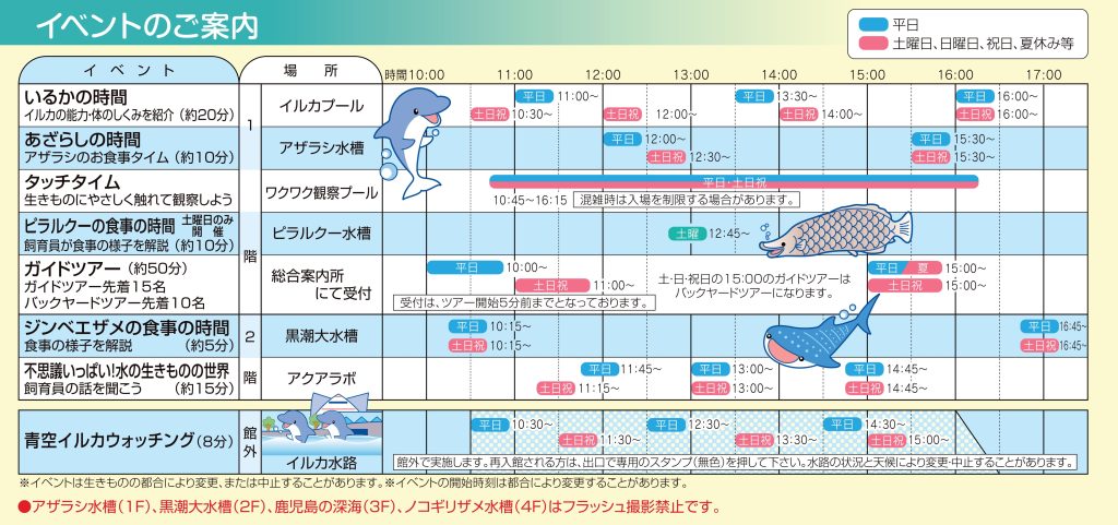1日2回スタッフが、各水槽や魚の解説をおこないます。(所要時間約50分)